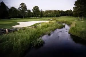 The most distinctive element of the Lake-River loop is the introduction of the Chagrin River which splits vertically both the Lake’s No. 9 fairway and River’s No. 12 fairway. The 388-yard No. 9, called “Decision,” presents two distinct options. The left fairway off the tee offers the more conservative play, leaving a short second shot over the creek. The riskier, tighter fairway on the right provides a better angle to the green and takes the water out of play with your second. Number 12 on the River, appropriately named “Chagrin,” is a classic Dye short par 4 of just 338 yards from the middle tees. The left fairway is narrower, but doesn’t require a forced carry and gets wider in the driving area. The right fairway has more water in play and narrows at the target zone, but presents the clearest path to the hole. Either way, the heart-shape green is well-protected by the river and two bunkers left and two back right.