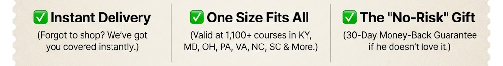 Why spend $80 on a polo he’ll wear twice? Give him up to 50% on greens fees every time he plays. It’s the only gift that pays for itself!