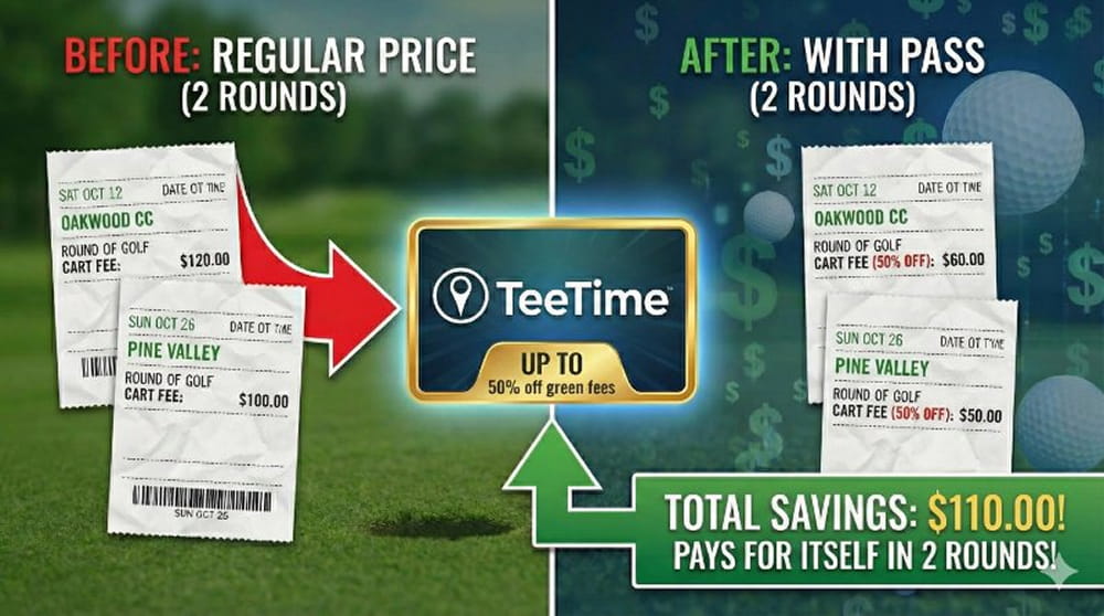 The Digital Pass (Super Pass) lives inside the TeeTime Golf Pass app and unlocks every course deal instantly on your phone.