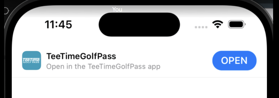 화면 상단의 열기 버튼을 클릭하면 티타임 골프 패스 앱이 열립니다.