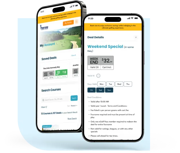 TeeTime Golf Pass enables you to access exclusive deals at your favorite golf courses. You could save up to 50% off every time you golf.